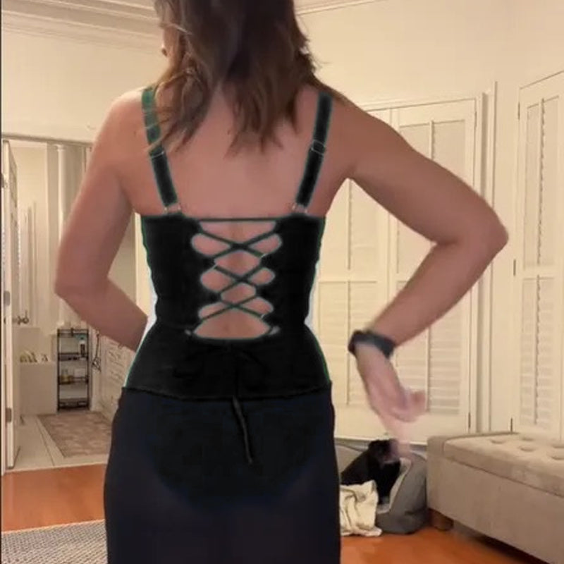 CHARAKTERISTICKÝ DESIGN S VÁZÁNÍM NA ZÁDECH – Má nastavitelné ramínka, které umožňují přizpůsobit velikost a poskytují tak oporu i styl.