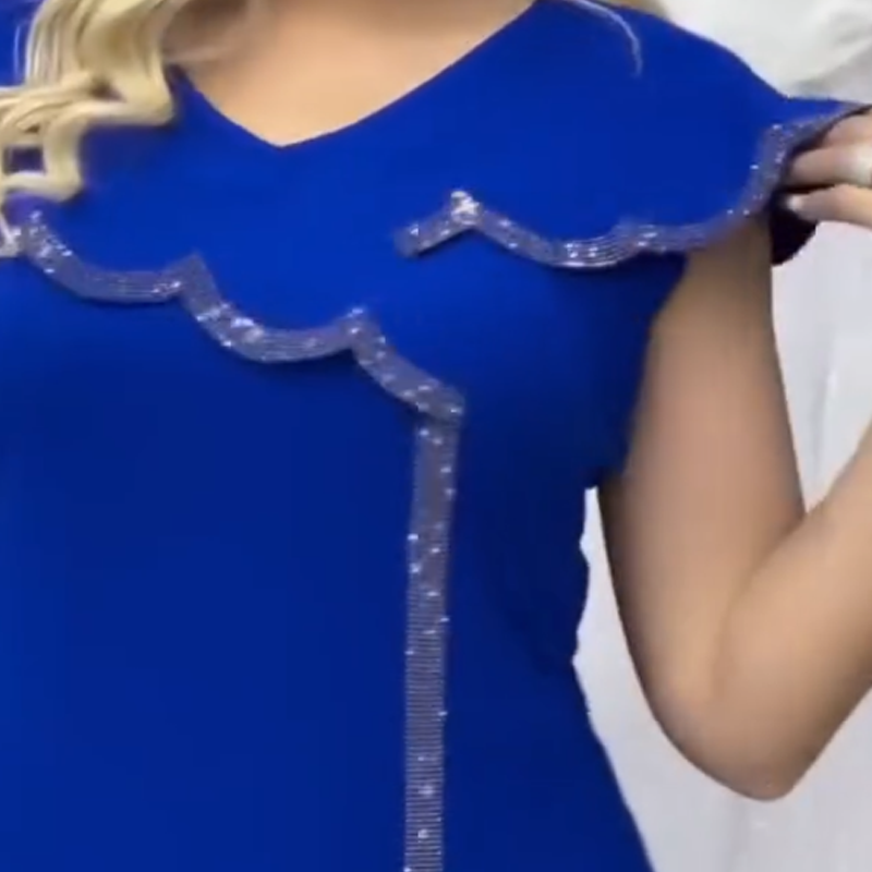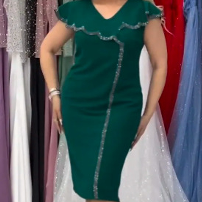 Dámské jednobarevné šaty s výstřihem do V a krátkými rukávy