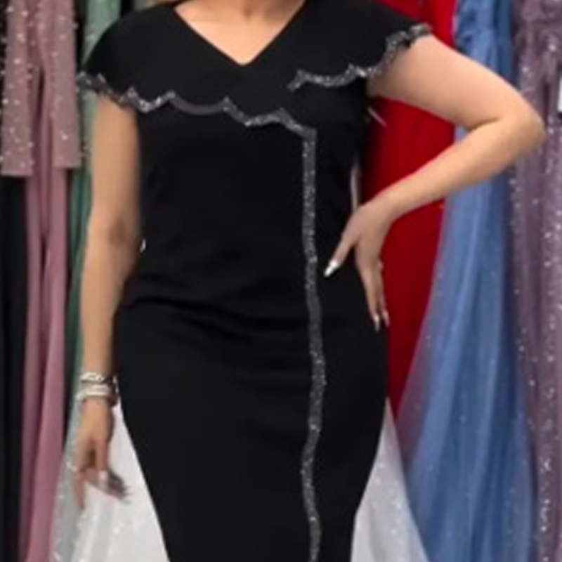 1 * Dámské jednobarevné šaty s výstřihem do V a krátkými rukávy